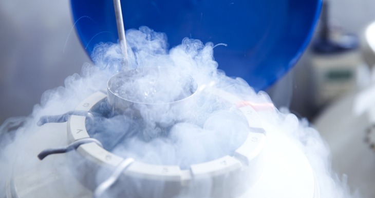 The embryos are stored in liquid nitrogen until needed for future use.